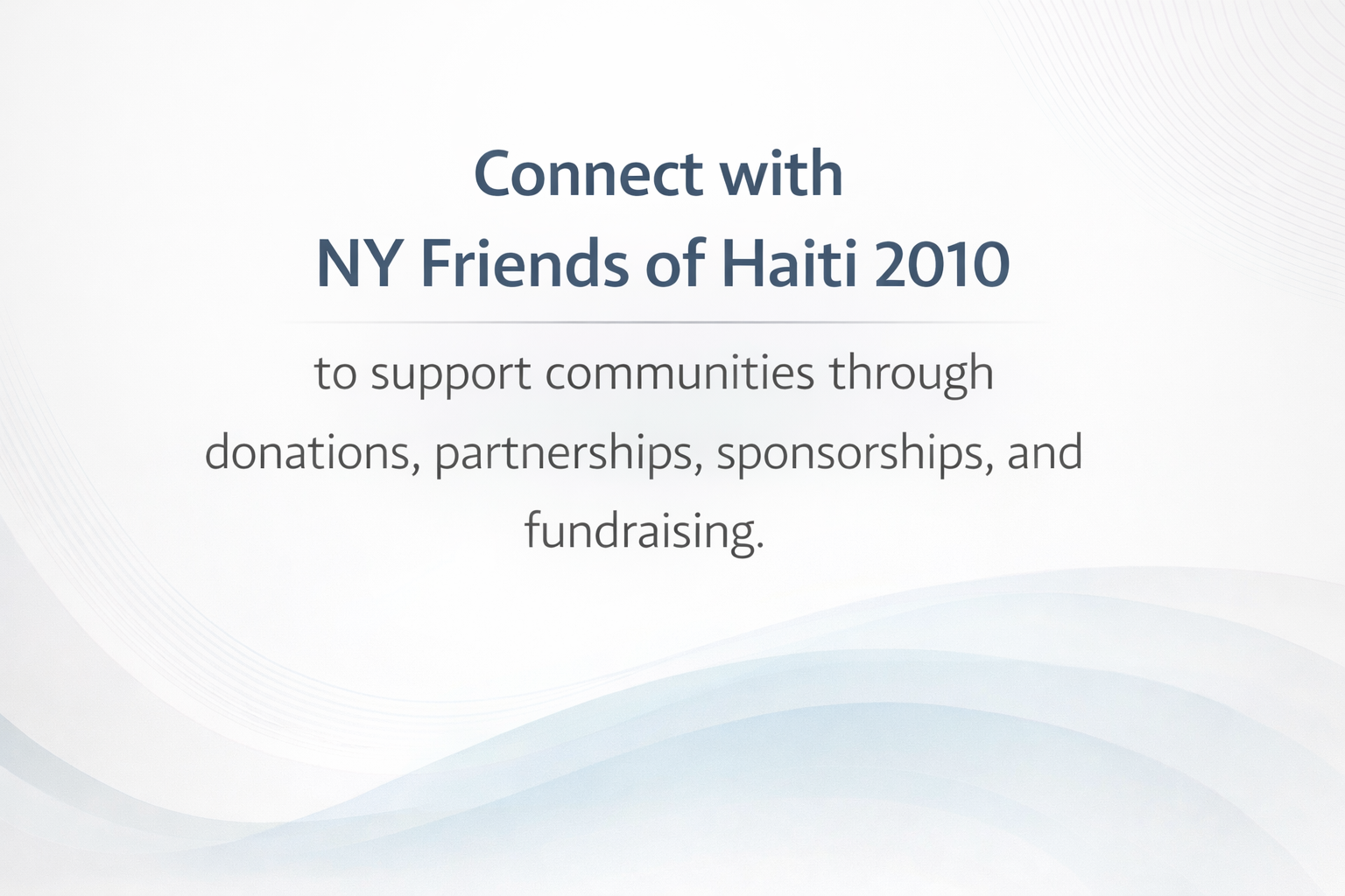 NY Friends of Haiti 2010 (NYFOH) works with corporations, foundations, and individual supporters to deliver measurable community impact. We welcome partners interested in: